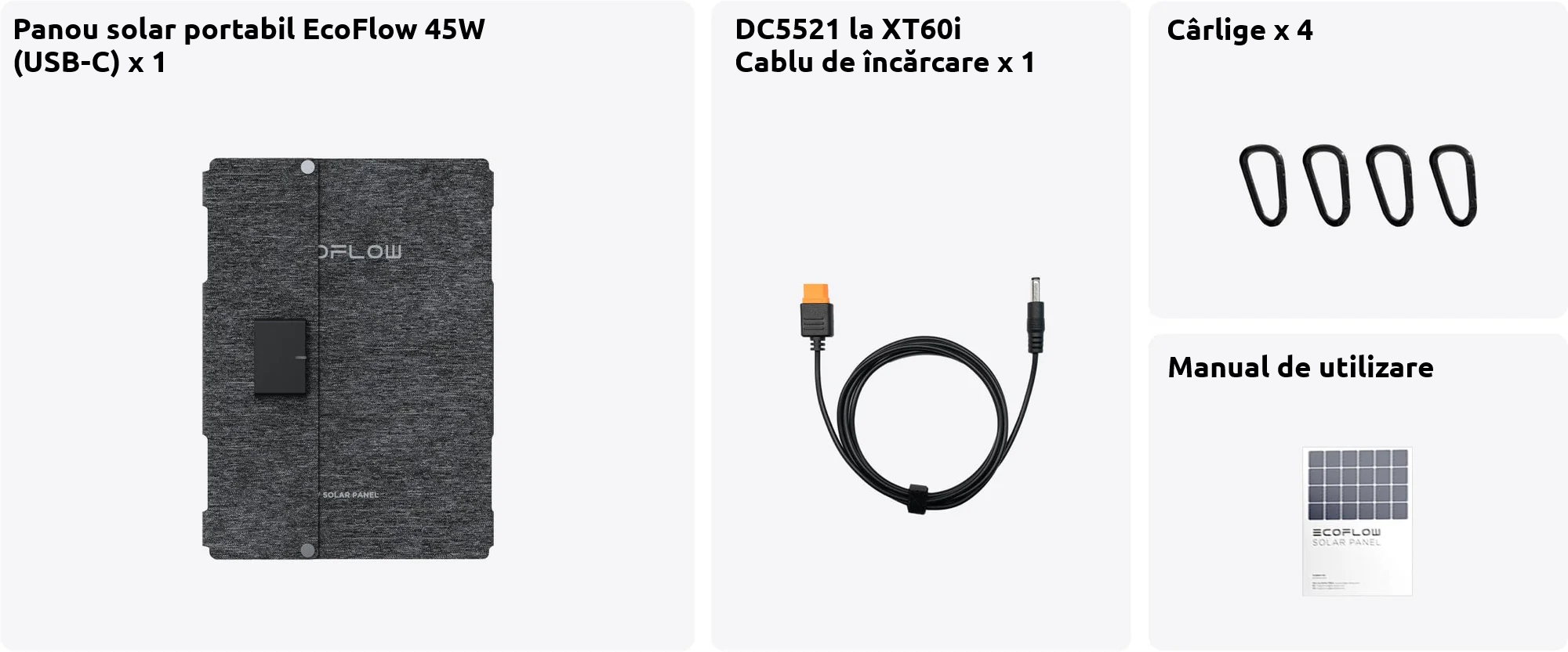 Panou solar portabil EcoFlow 45W (Tip-C)