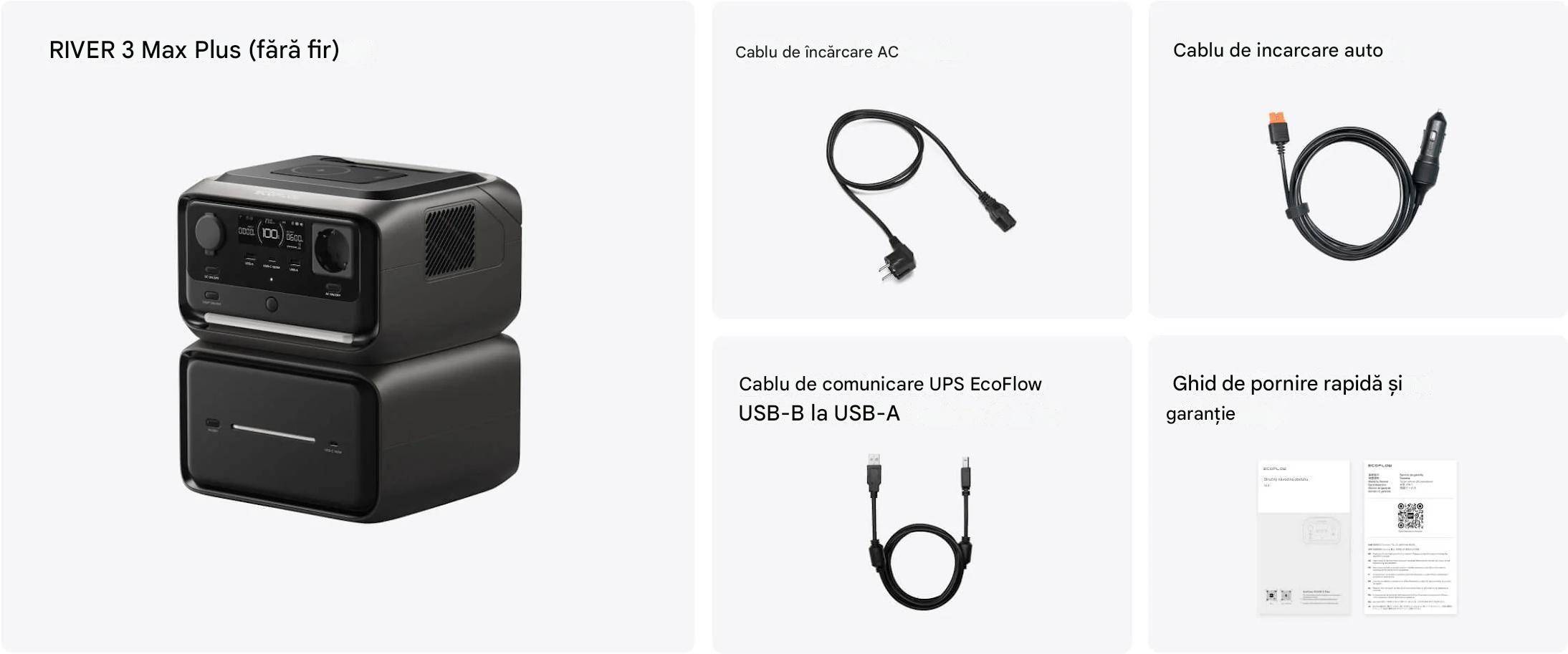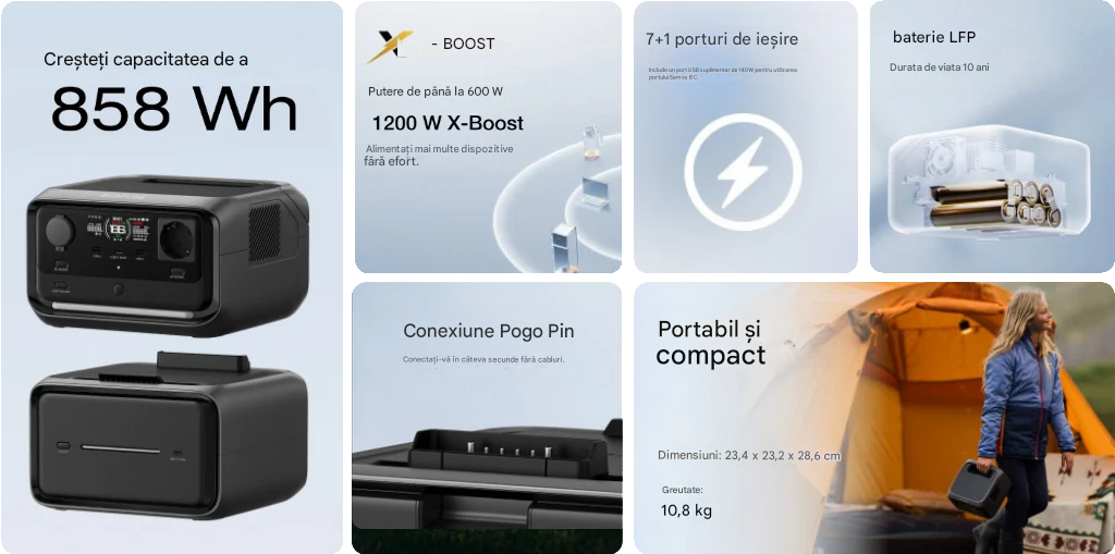 EcoFlow RIVER 3 Max Plus Wireless - 858 Wh centrală electrică portabilă + baterie externă RAPID 5000