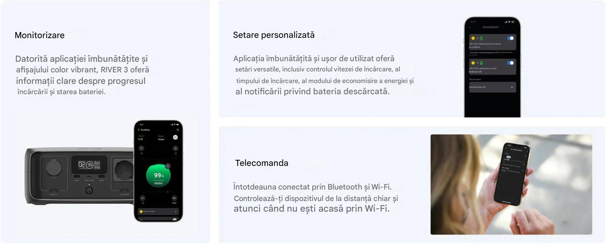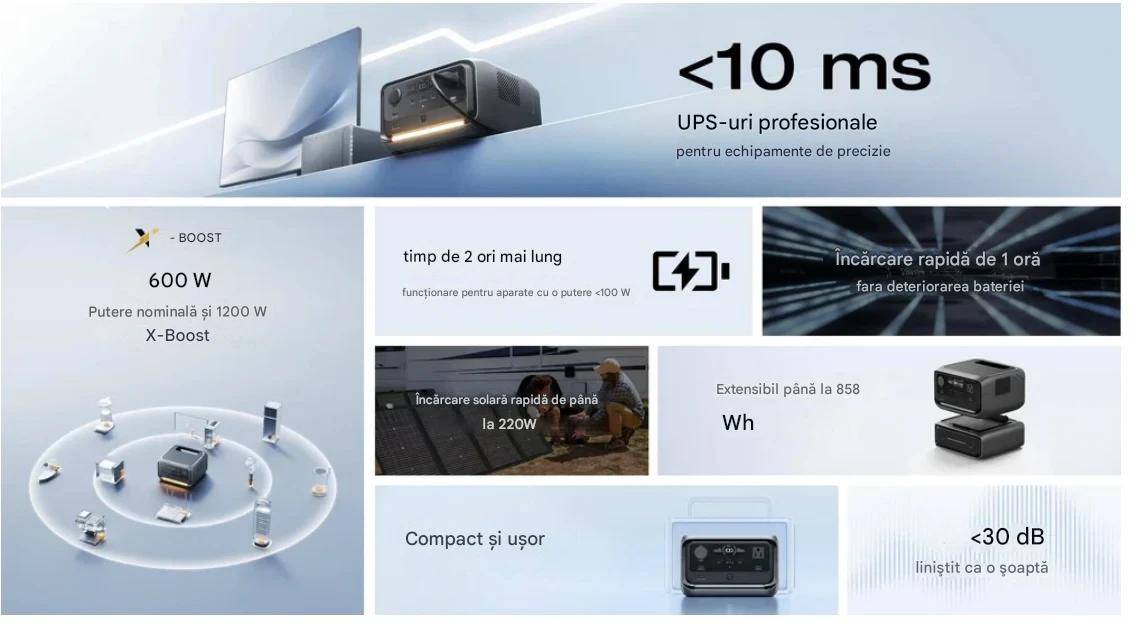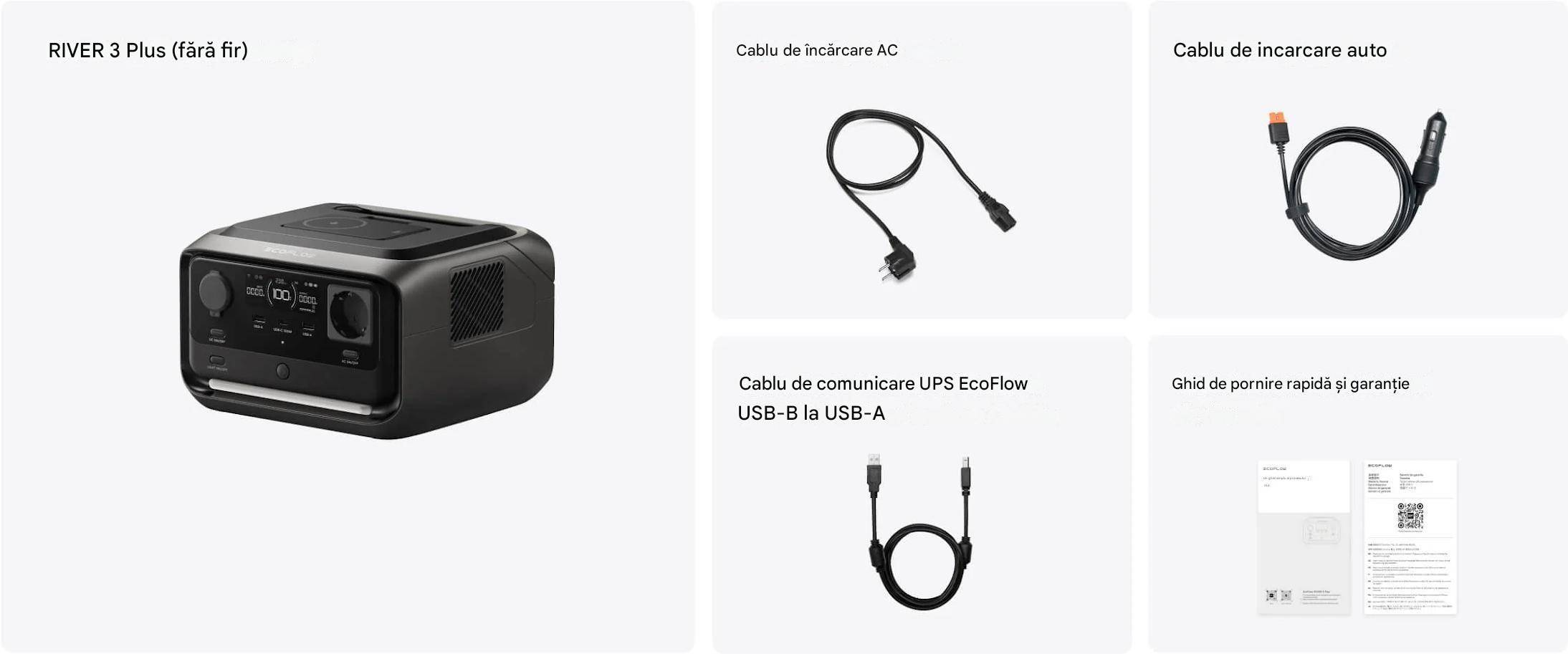 Stație de alimentare portabilă EcoFlow RIVER 3 Plus Wireless 286 Wh